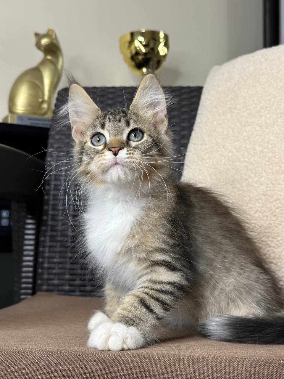 Huge thanks to Karina for our gorgeous Maine Coon! Big, fluffy, and with a golden personality. The kitten adapted instantly, and the delivery to New York was seamless. This was my best purchase ever!
